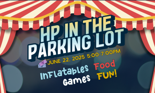 HP in the Parking Lot Sunday, June 22nd Join us for a fun family event! Sunday, June 22nd Come to HP in the Parking Lot June 22 at 5pm for Food, Fun, and Festivities (games and inflatables)!